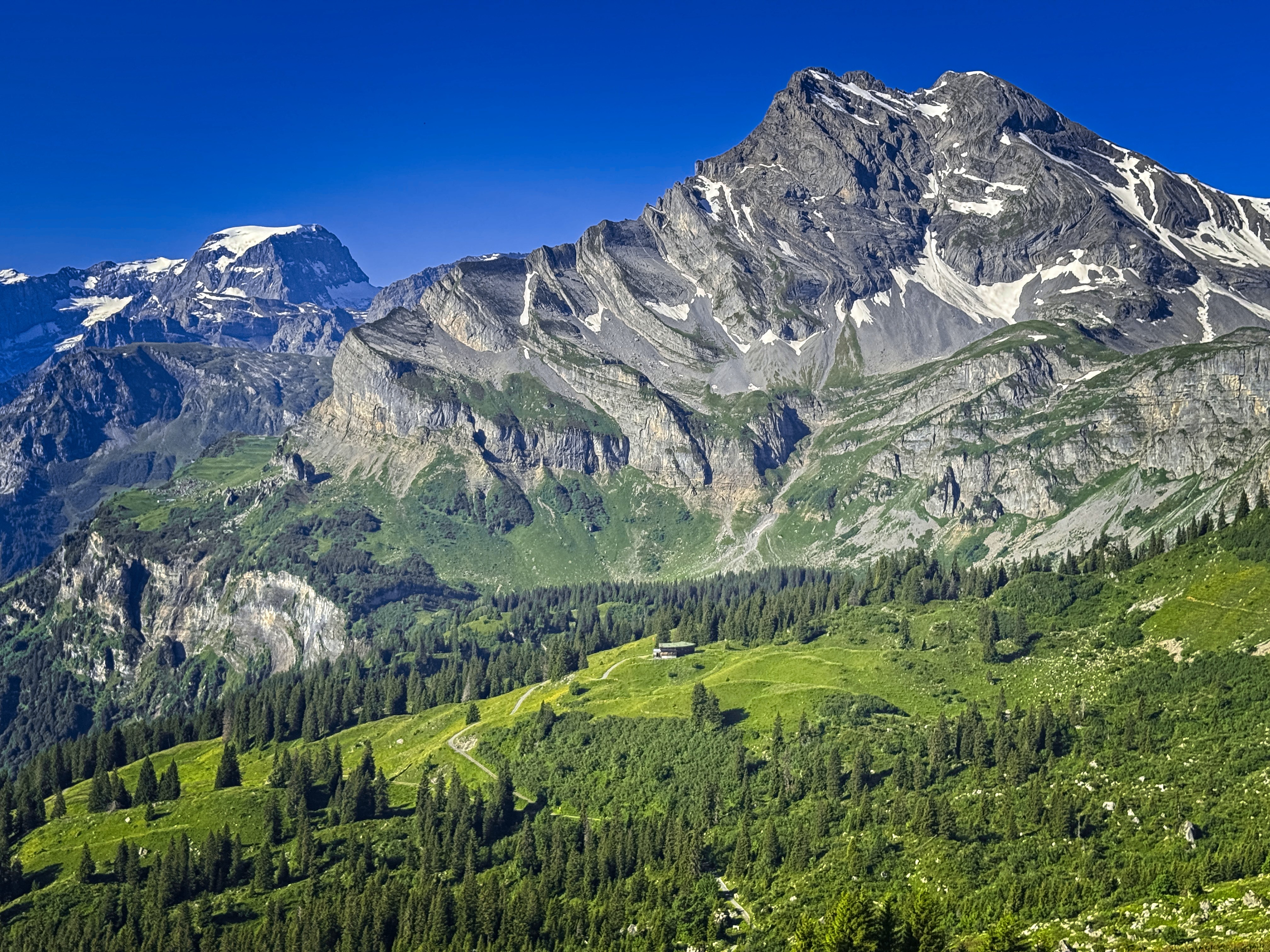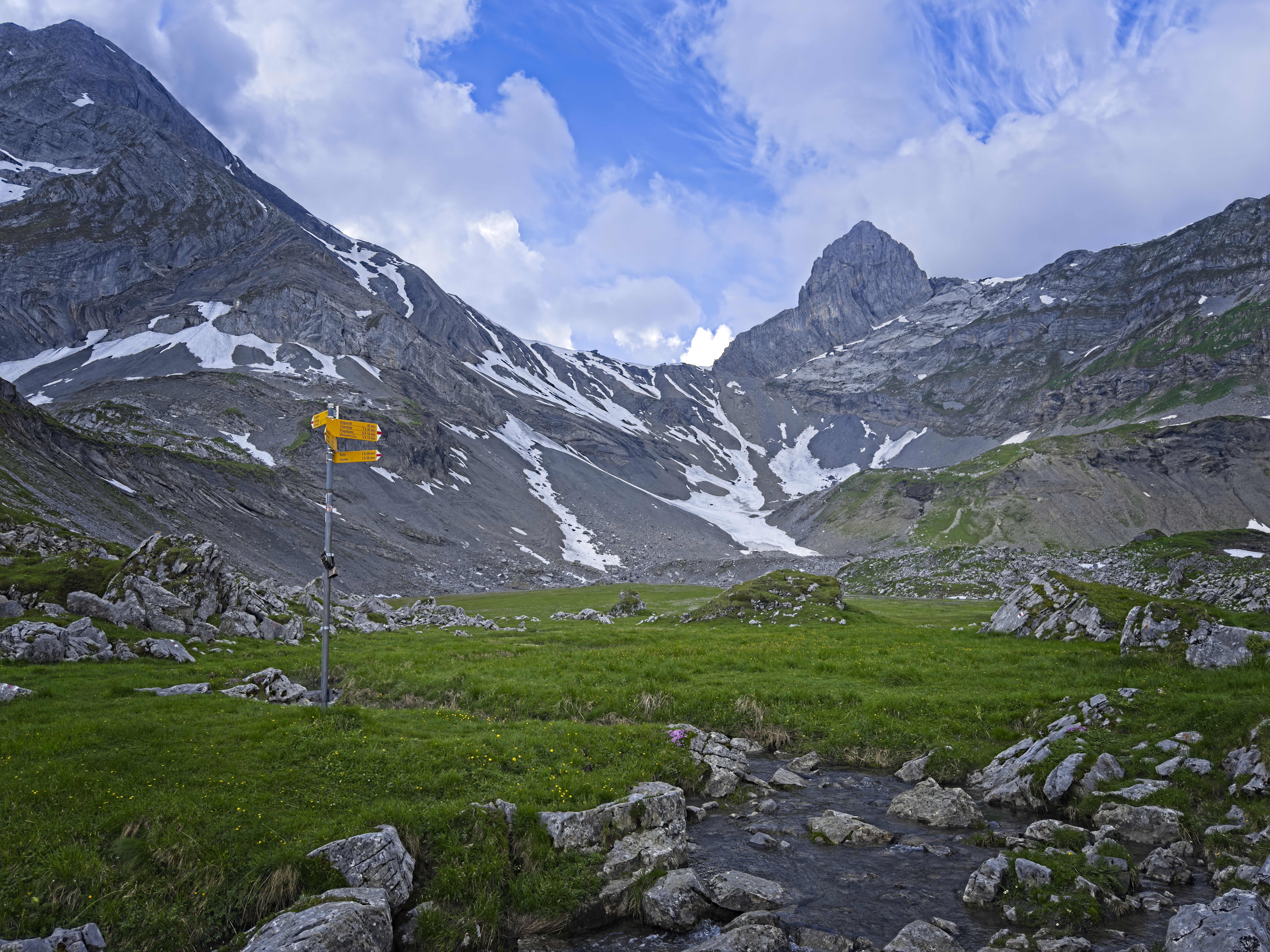 Going down was harder. I opted for the scree, but gosh, it was unpleasant! It really took me a while to make the many decisions about which way to weave. Finally I was at the top of the rock climb, which I carefully reversed. Getting down the snowfield was probably the most difficult part of the day. I ended up kicking many steps and facing in to downclimb. Occasionally I would traverse, but the snow was both slick and a bit too hard underneath to feel like I could arrest if I slipped. Tired out, I reached hiking terrain, then marched back towards the trails 2 kilometers away. This time I took a different route because I wanted to visit a place called Bützi, which I did and it was nice.