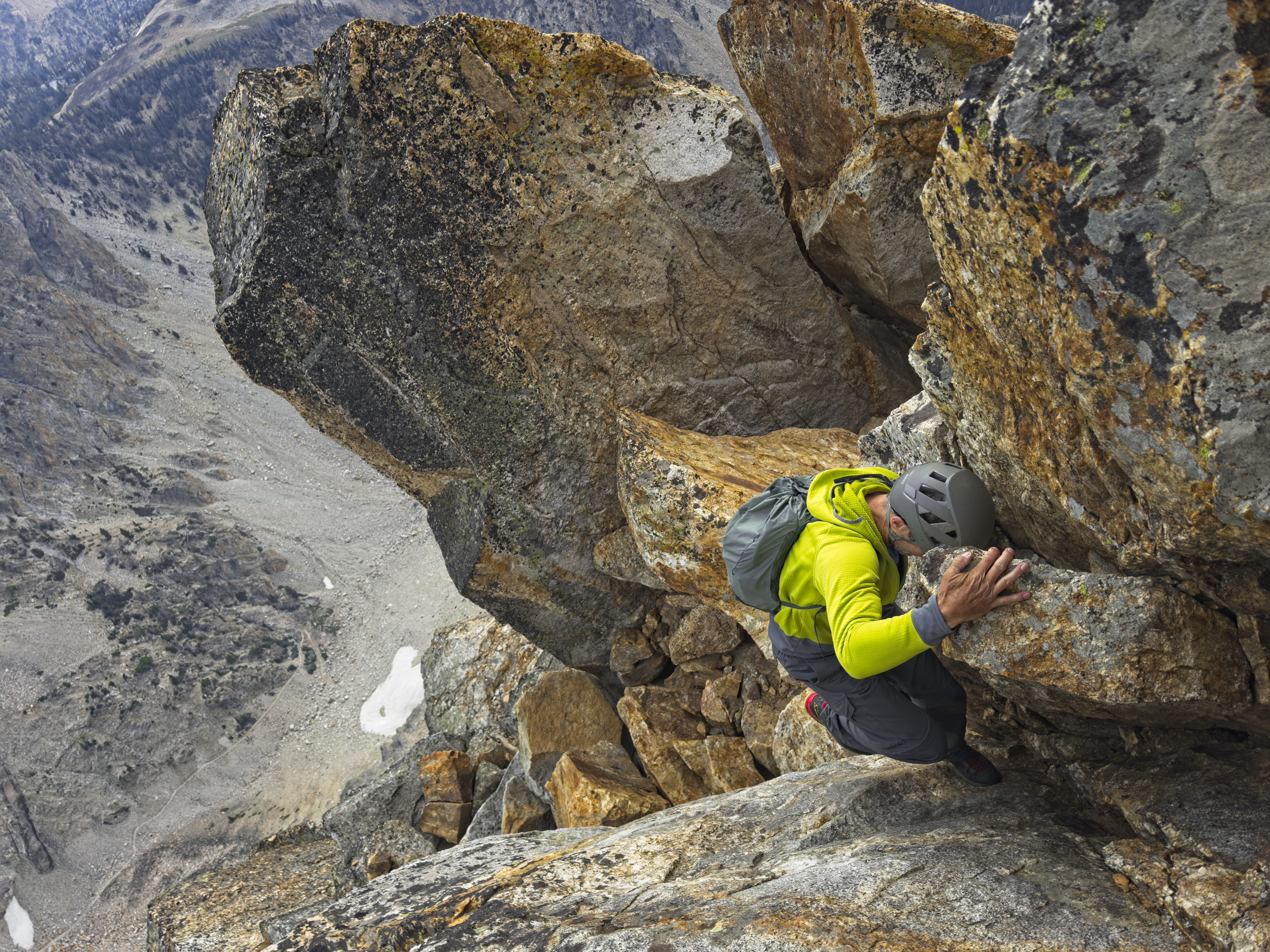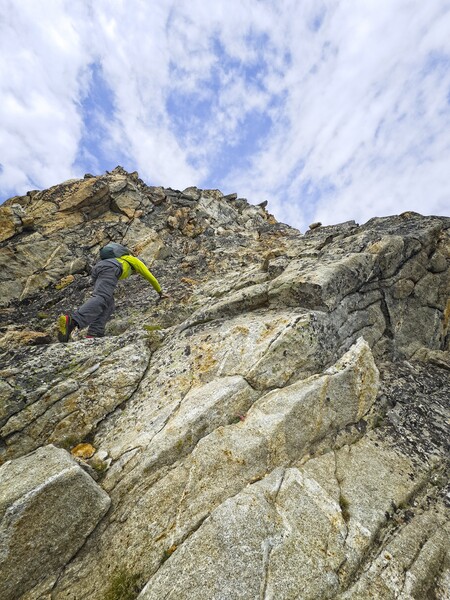 Steve begins our chosen scrambling route below the summit