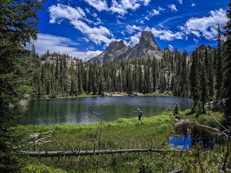 Steve admires Packrat Peak above Warbonnet Lake