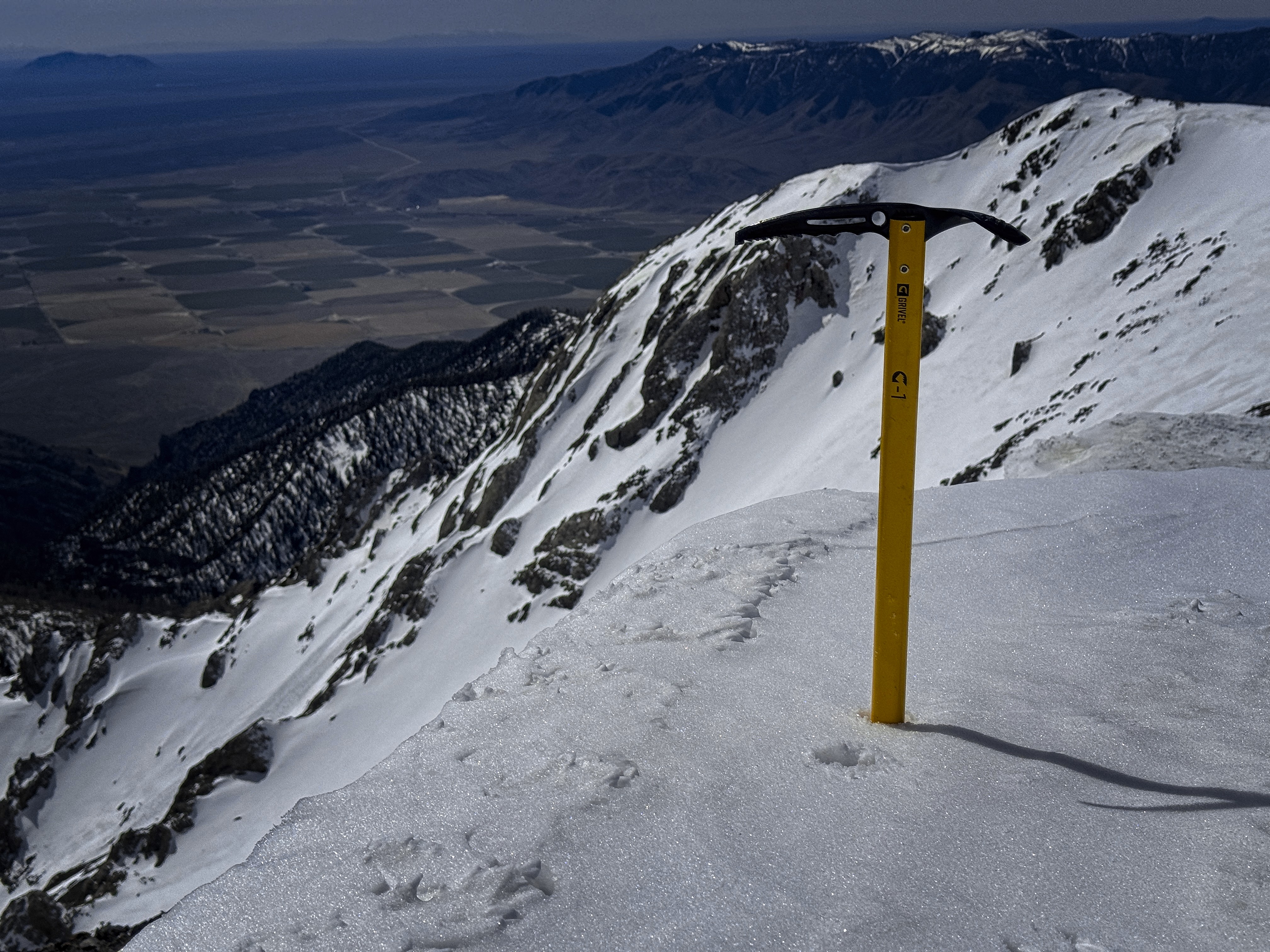 I used this snowy peaklet to mark where I should head down (okay, I had