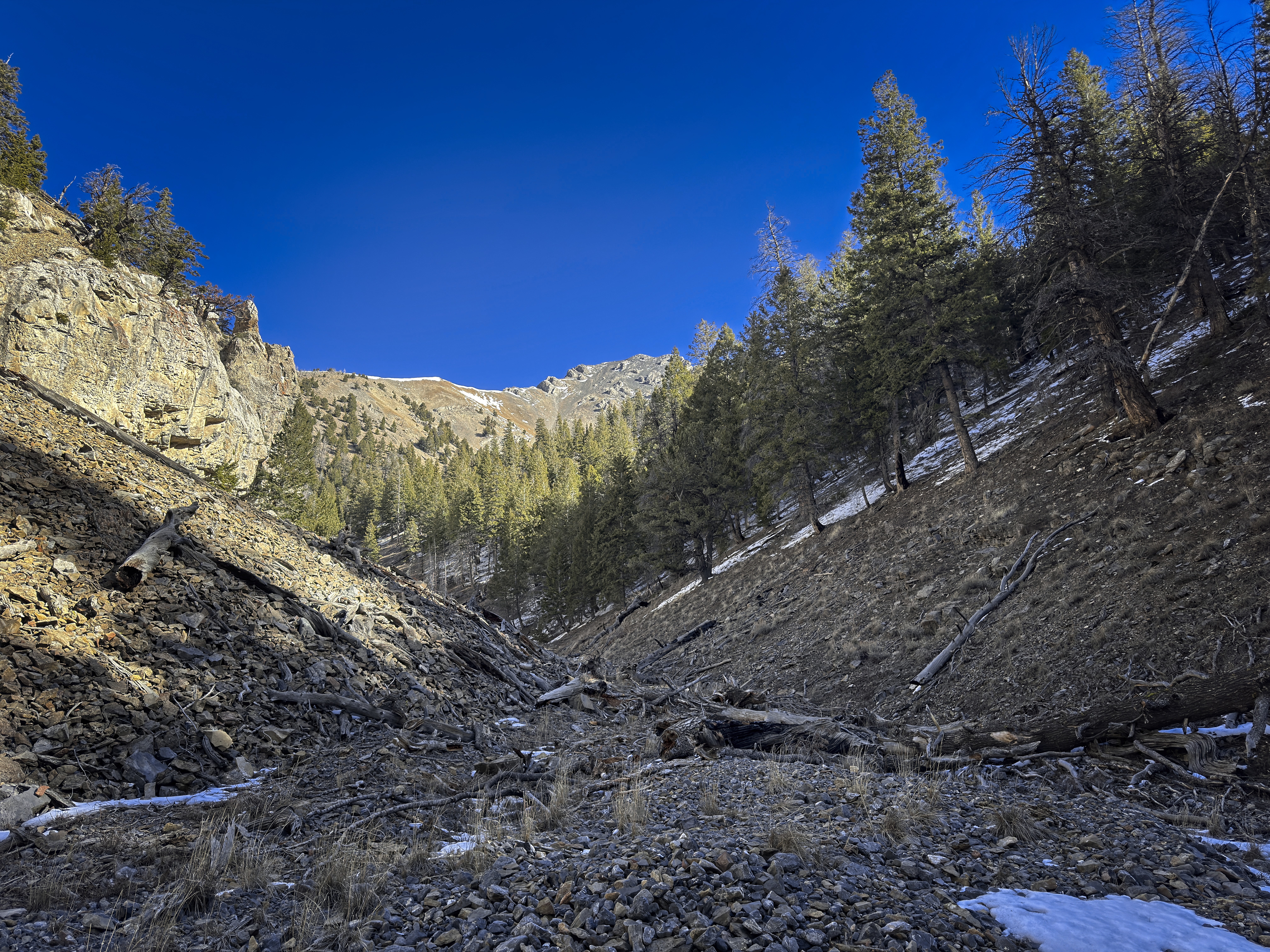 But eventually I was low enough that the snow became less of a factor, and I could tiredly wade down through the trees and occasionally wrong turns where the canyon broadened temporarily.