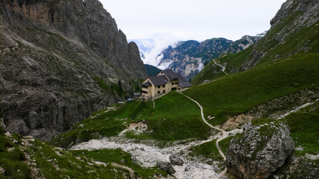Back in July, Kris, the boys and I went on a long hike in Italy. The first night we stayed at the Grasleitenhütte, beautifully nestled in the Rosengarten Dolomites. We met Anna K., a student who was spending the summer there. She was playing guitar and singing in the common room. I played along for a while, and we agreed to meet one day to play more music. Amazingly, that happened on Saturday, when she and a friend Julia came to Munich for Oktoberfest. I had a terrible cold, so I had to keep my distance, but we managed to record Anna playing guitar and singing, and Julia played the intro on guitar as well.