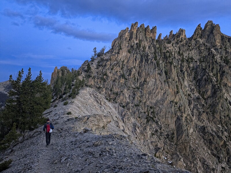 Michael on the ridgetop, about to drop down to a bench above the Warbonnet Lakes