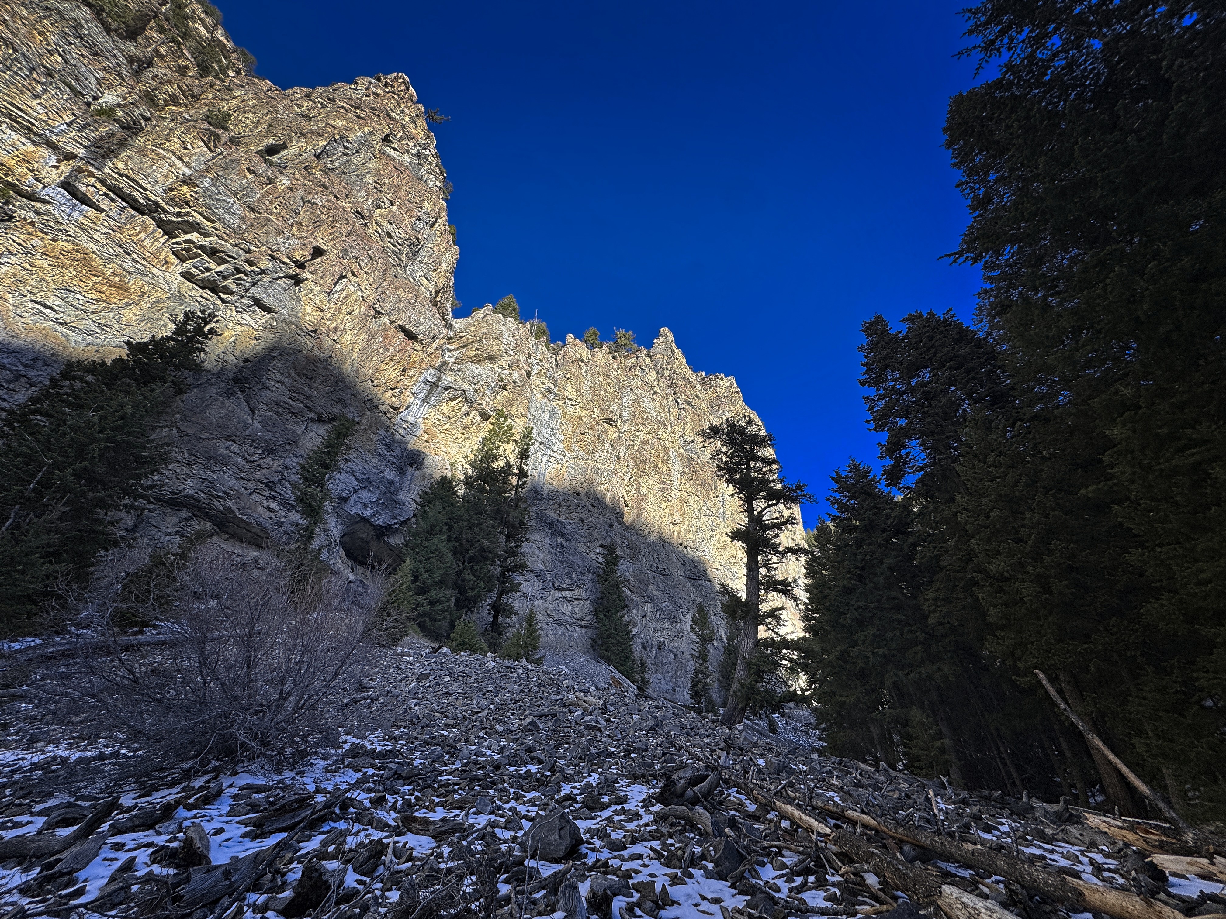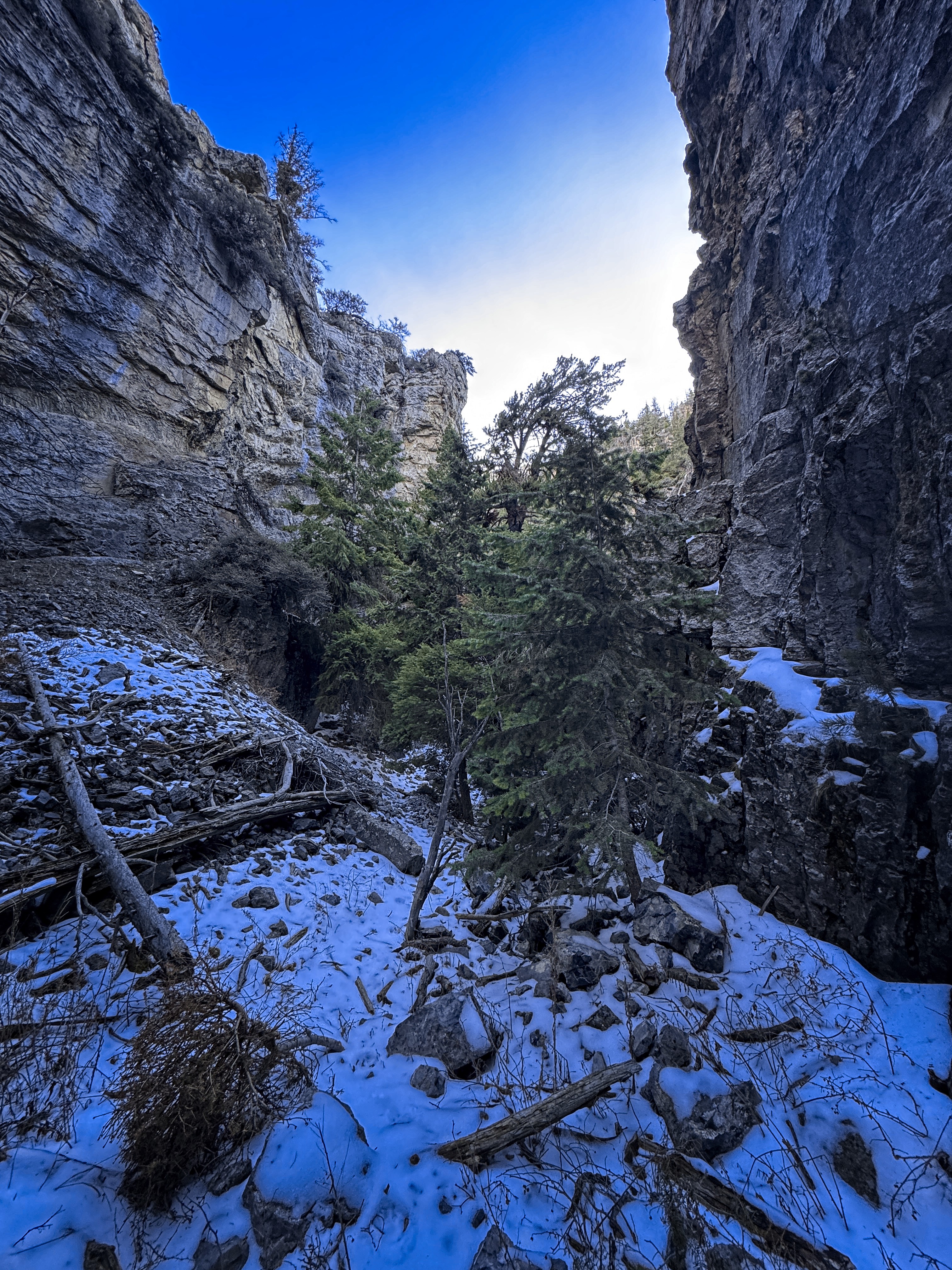 But eventually I was low enough that the snow became less of a factor, and I could tiredly wade down through the trees and occasionally wrong turns where the canyon broadened temporarily.