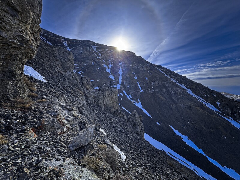 The sun comes over the Webber Peak ridgeline low on the Rib