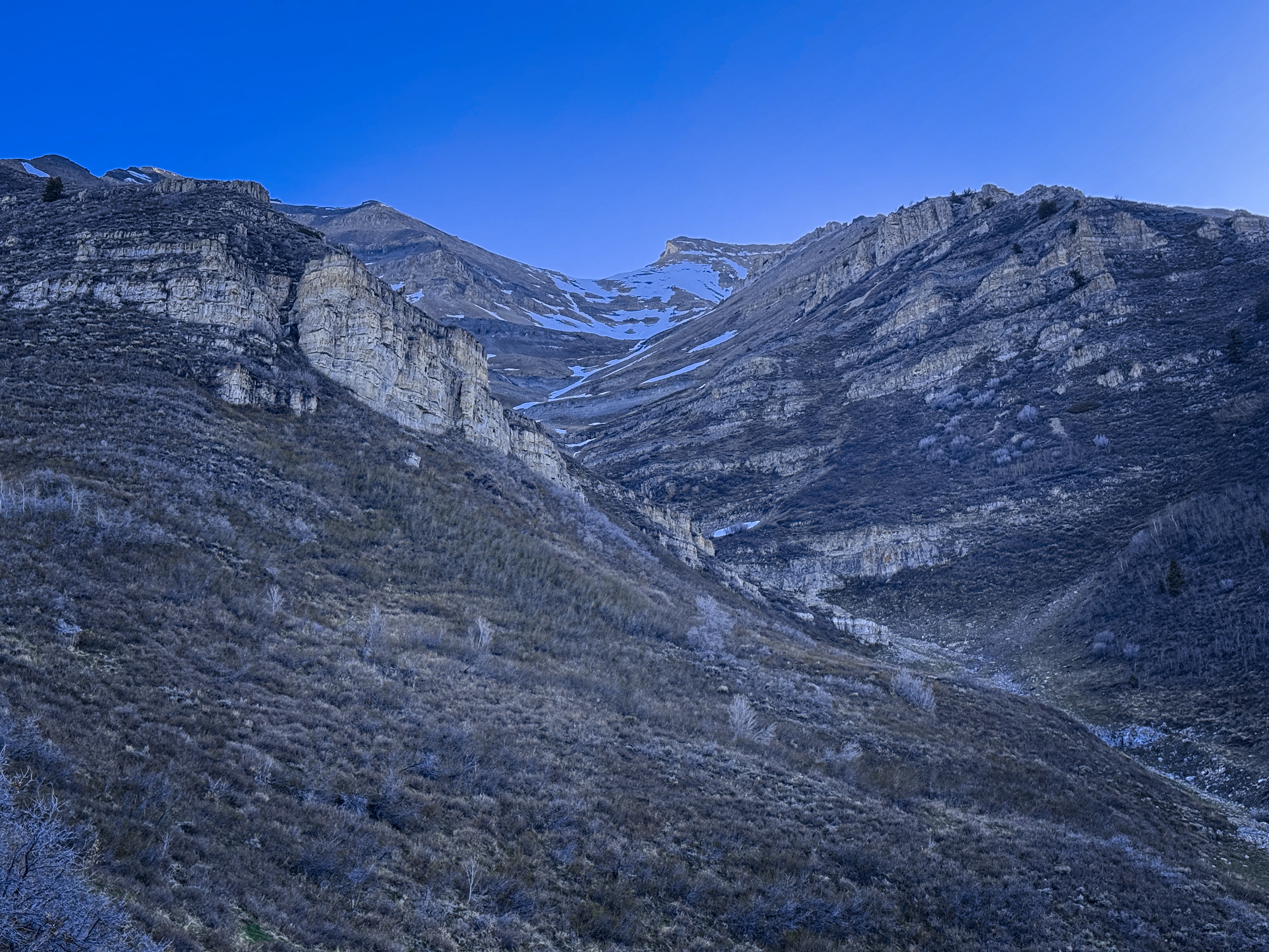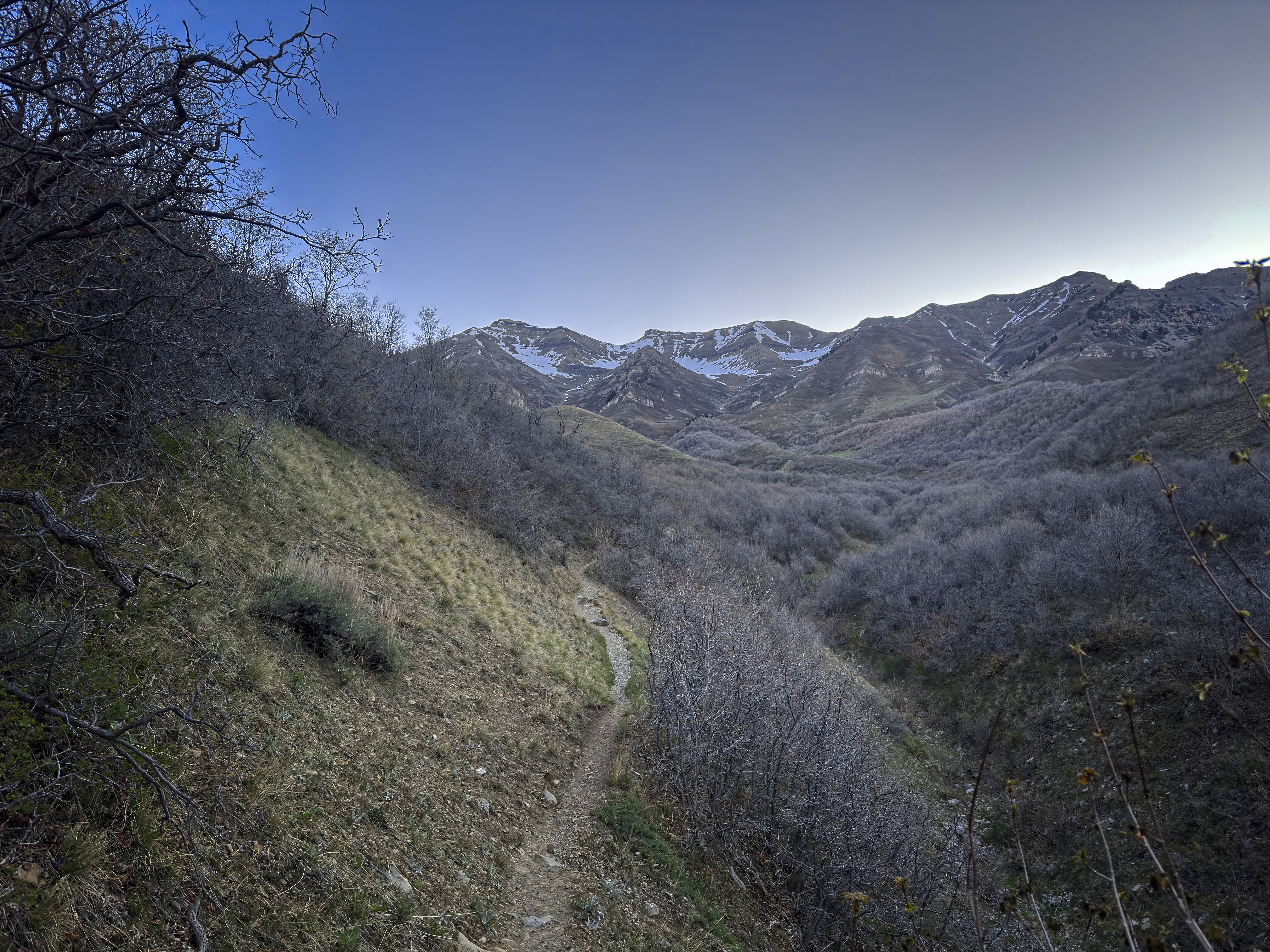 I'd actually tried to climb this mountain before, 29 years ago in 1997! Kris had a business trip that took her to Provo, and I came along. It was mid-November, and pretty cold. While she went to meetings, I escaped to the back side of Timpanogos and started hiking up the trail. I ran into deep snow about half-way up, and had to call it quits. That was the last time I was in Utah. This time, I'd been inspired by X, who climbed the peak with friends about a month ago. Wow! I'd try to climb it by his route, which is the Everest Ridge, so named because some Salt Lake climbers in the 1990s used it to train for Mount Everest.